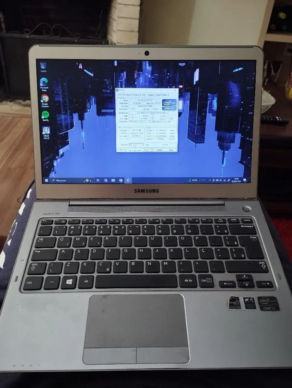 Notebook Samsung com processador Intel Core i7, ideal para suas tarefas diárias com desempenho e velocidade. Leve, compacto e pronto para te acompanhar em todos os lugares. Bateria boa, 480gb de SSD, 4GB RAM . Tem um pequeno defeito no alto falante (o som fica estourando).