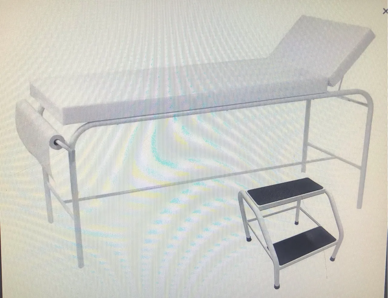 Maca fixa com regulagem de cabeceira e dispenser de papel rolo + escada de 2 degraus para clínica. 1,80mt de comprimento, 63 cm de largura, 78 cm de altura. Estrutura em aço pintada branca. Suporta até 200kg.