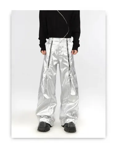 Calça oversized prateada Usada duas vezes, em perfeito estado Veste P, tem 78cm de cintura e 108cm de comprimento.