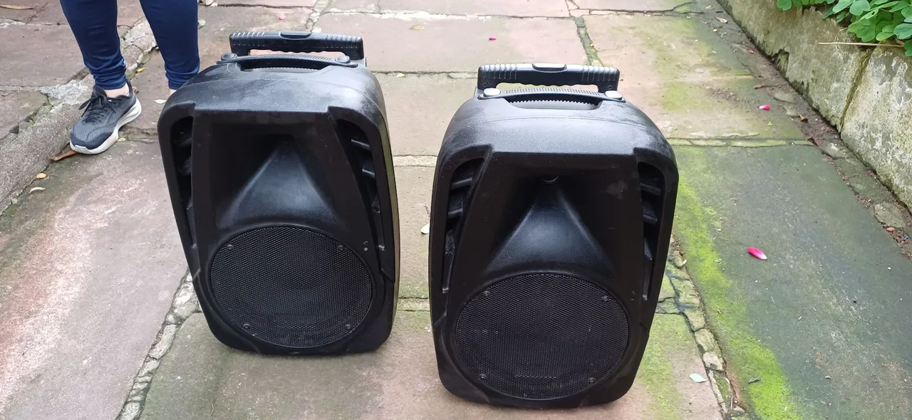 Caixas com alto rendimento, para som ao vivo, voz e violão, palestras, bares etc.