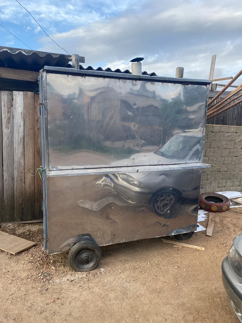 Carrinho para churrasquinho em inox Com churrasqueira e bancada