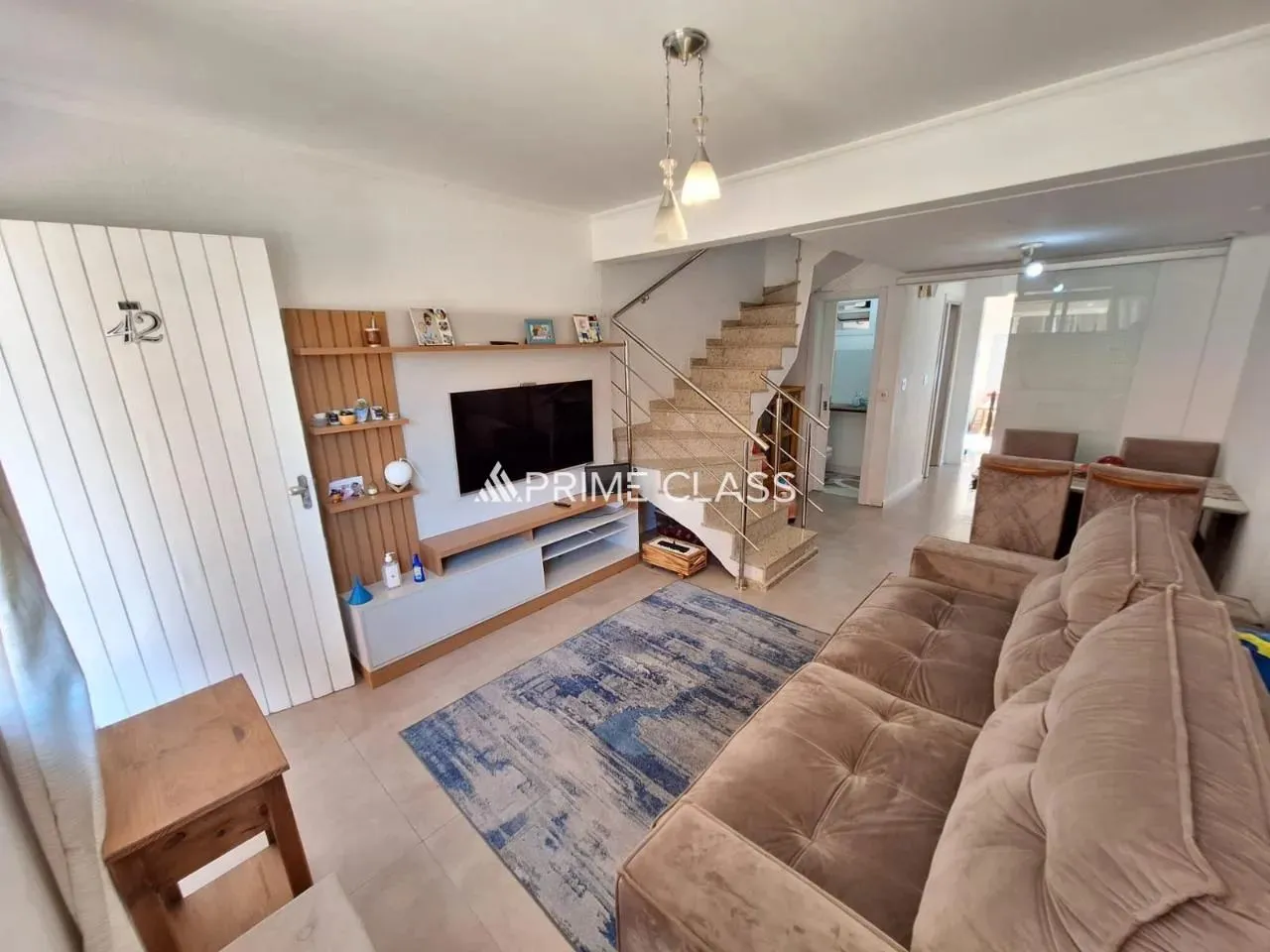Sobrado de dois dormitórios, lavabo, banheiro social, sala de estar/jantar, cozinha e área com churrasqueira e fogão campeiro. Duas vagas de garagem, sendo uma coberta e outra escriturada e descoberta.